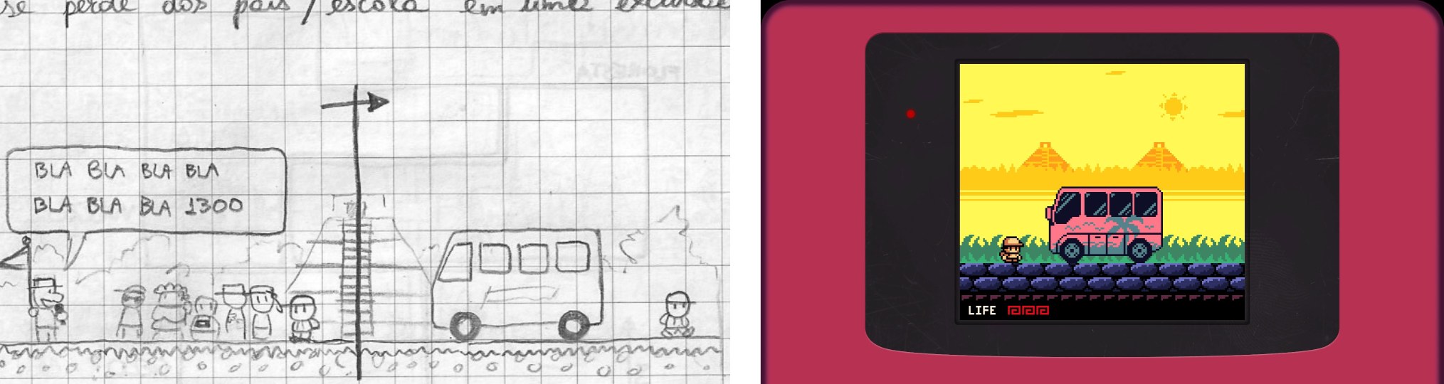 As you must know by now, we're a group of hobbyist devs from Brazil who worked on this game sporadically, and mostly asynchronously, in our free time. Having Raider Kid and the Ruby Chest finally come together as a fully playable adventure that we can share with the world feels like the cathartic end of a long chapter, that started as a notebook sketch in 2012!